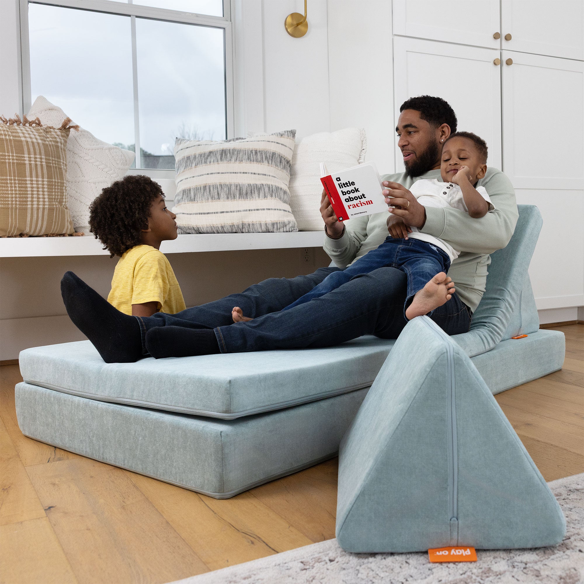 Sarah's Silks products add a touch of magic to the Nugget® play couch and Chunk™ play ottoman — they encourage imaginative world-building, and they're just as versatile, convertible, and endlessly playwithable™ as our play furniture!