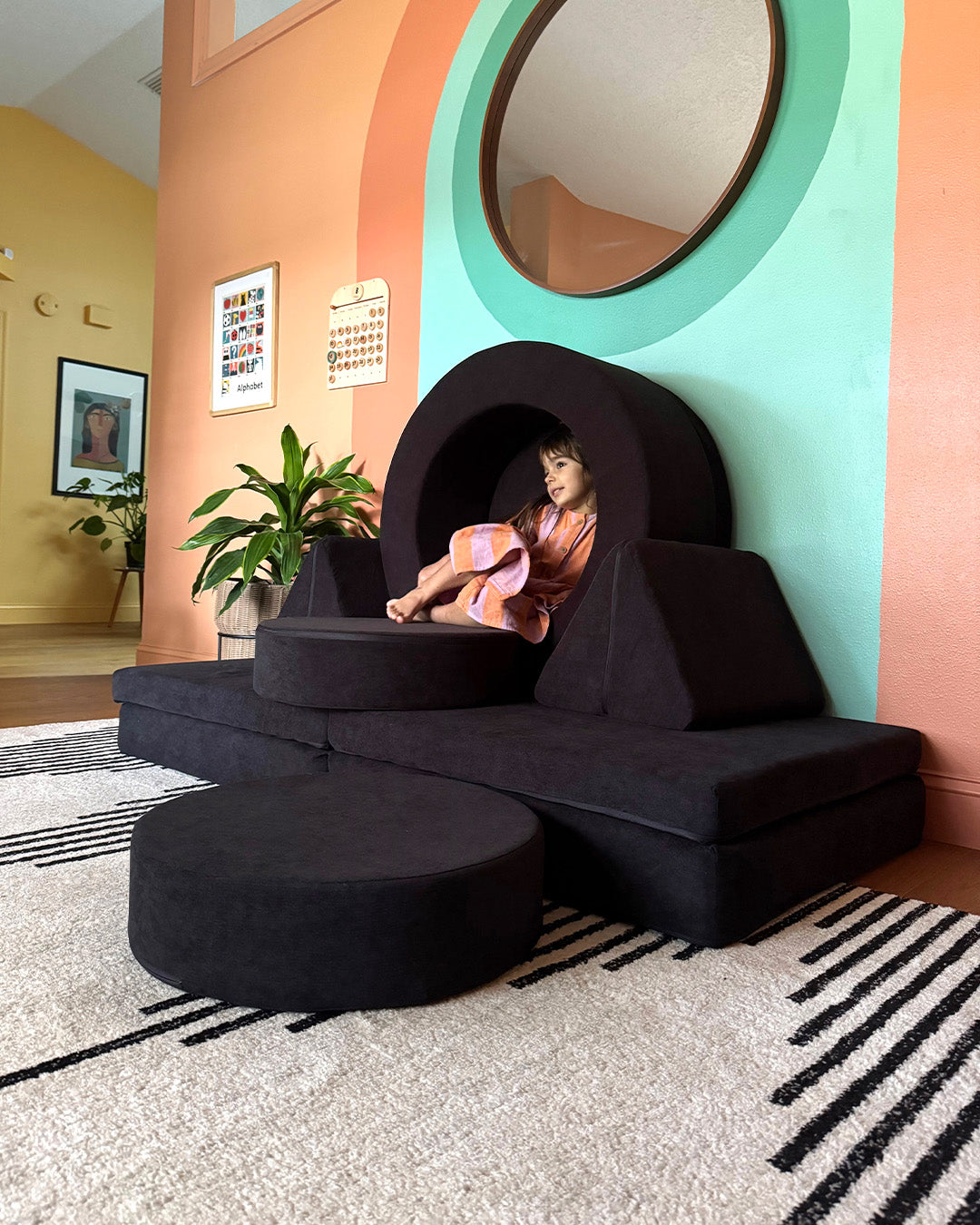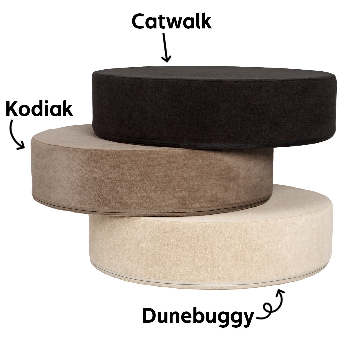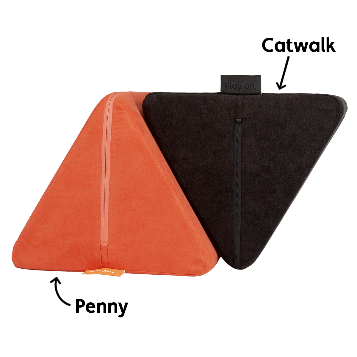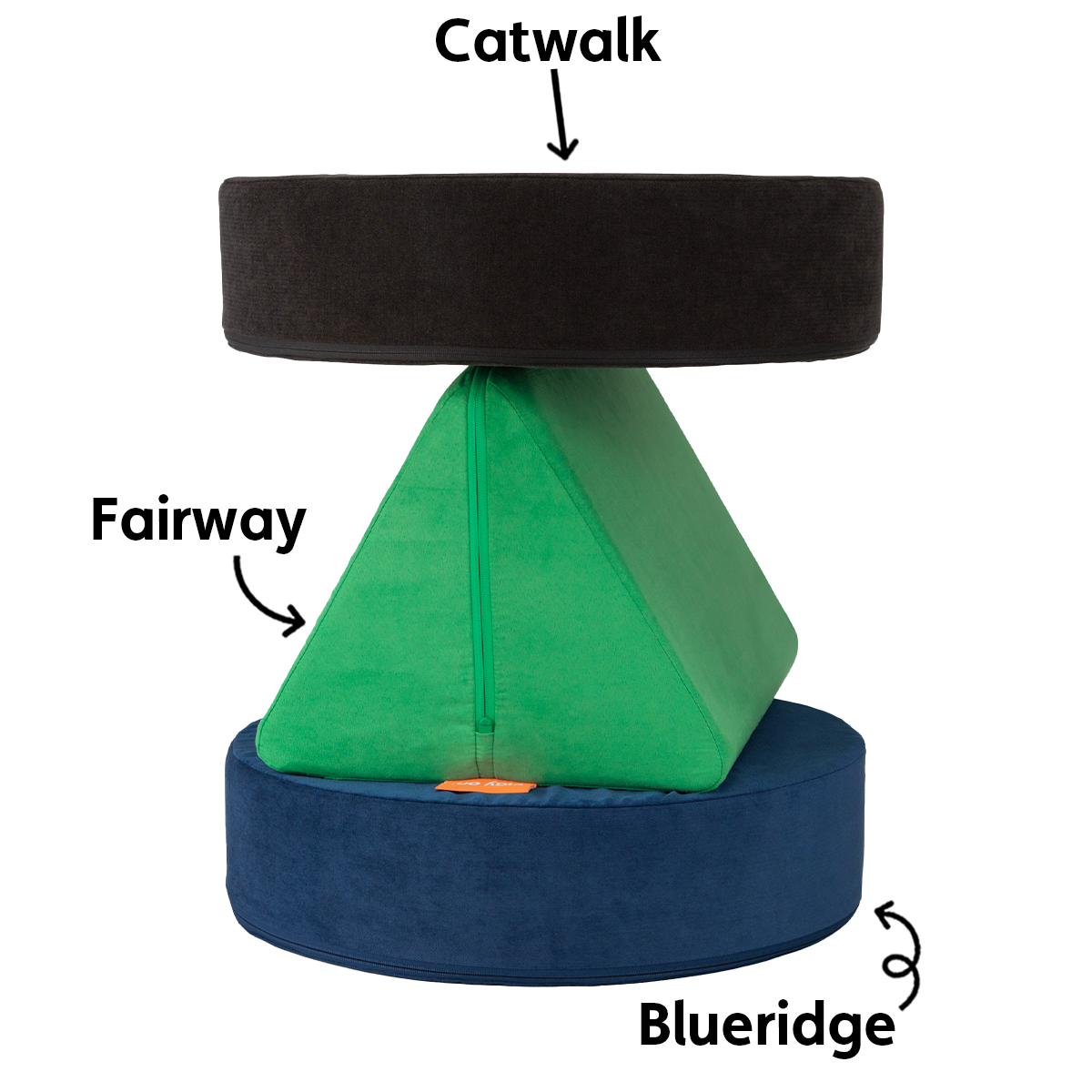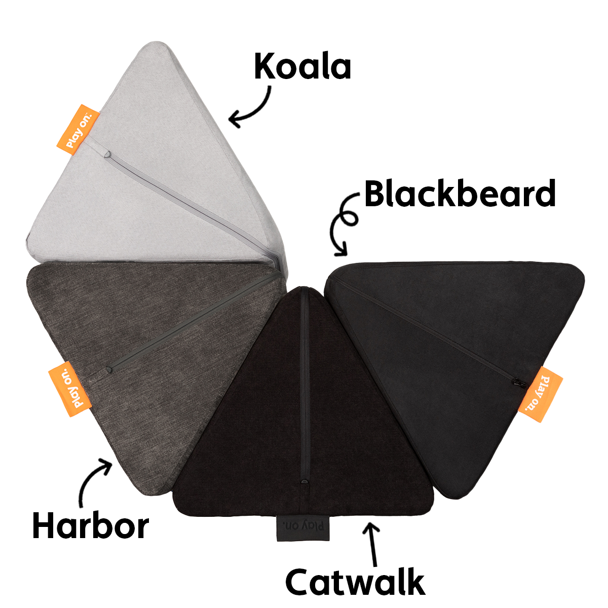 Iconic playtime style just strutted through the door. Compared to other Nuggety black and gray neutrals, Catwalk is closest to retired Blackbeard, another true black — but Catwalk’s black-on-black tags and dyed-to-match black handles create a super modern, unique silhouette. Catwalk’s double-brushed microsuede fabric tends to reflect a bit of sheen, so it has less of a matte finish than classic microsuede Blackbeard. Harbor and Koala are both much lighter and more gray than Catwalk.