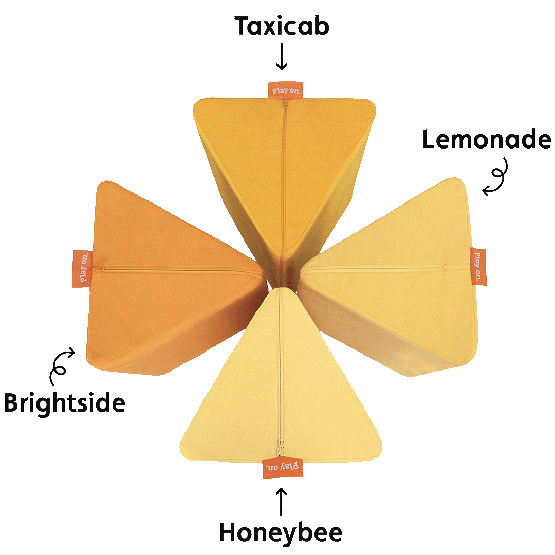 Add some zest to playtime with our classic, cheerful yellow! Lemonade is our soft take on a radiant yellow. It’s slightly more saturated than retired Honeybee. Both Taxicab and Brightside present more orange than this classic yellow.