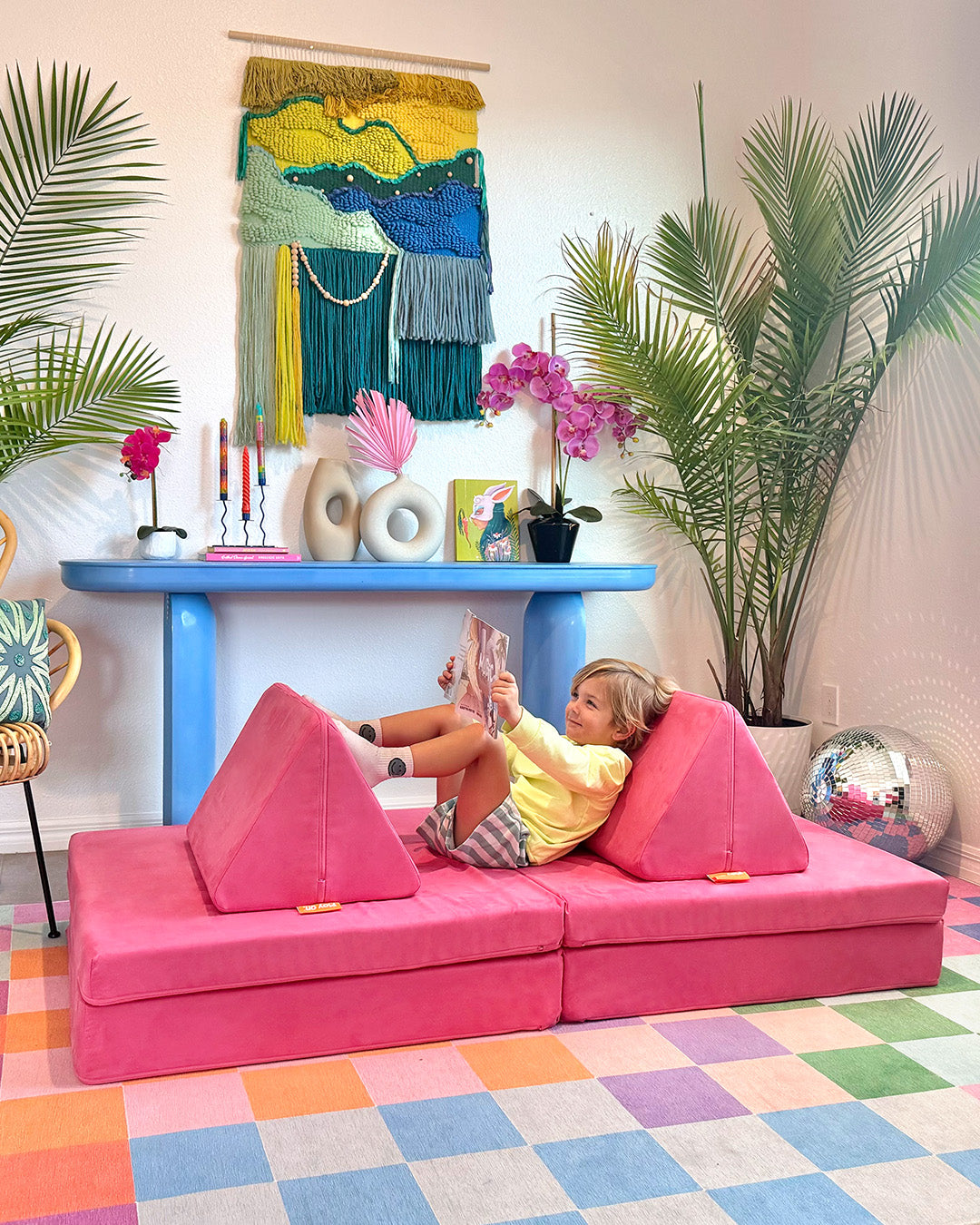 It has a suede-like finish — hence the name! — and it’s durable enough to withstand just about anything your kids throw at it, real or imaginary.