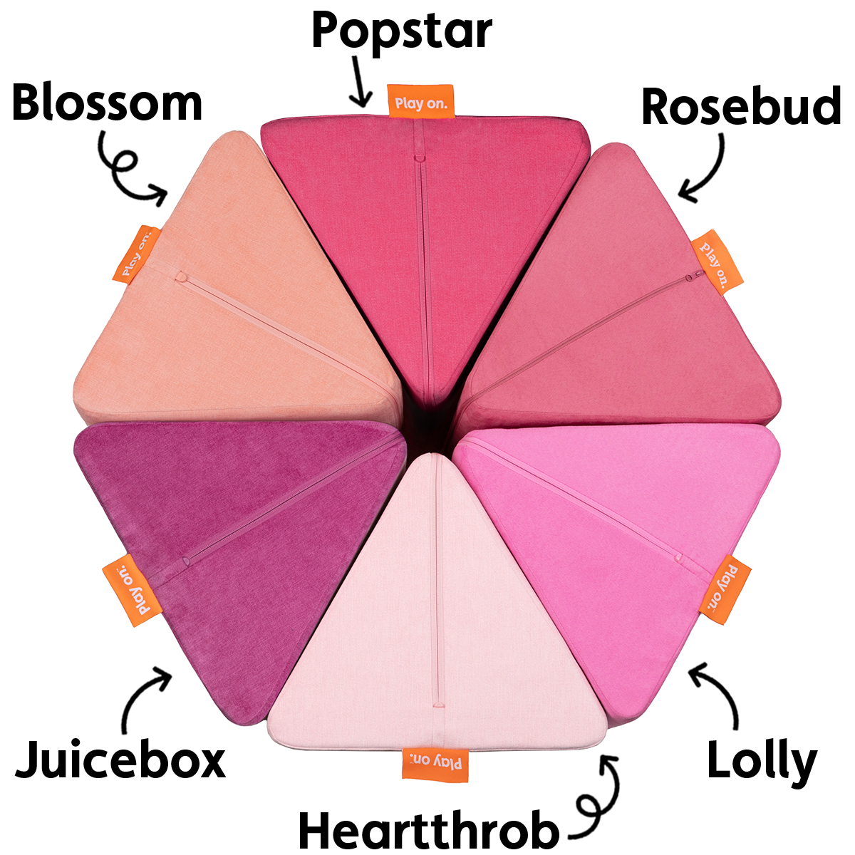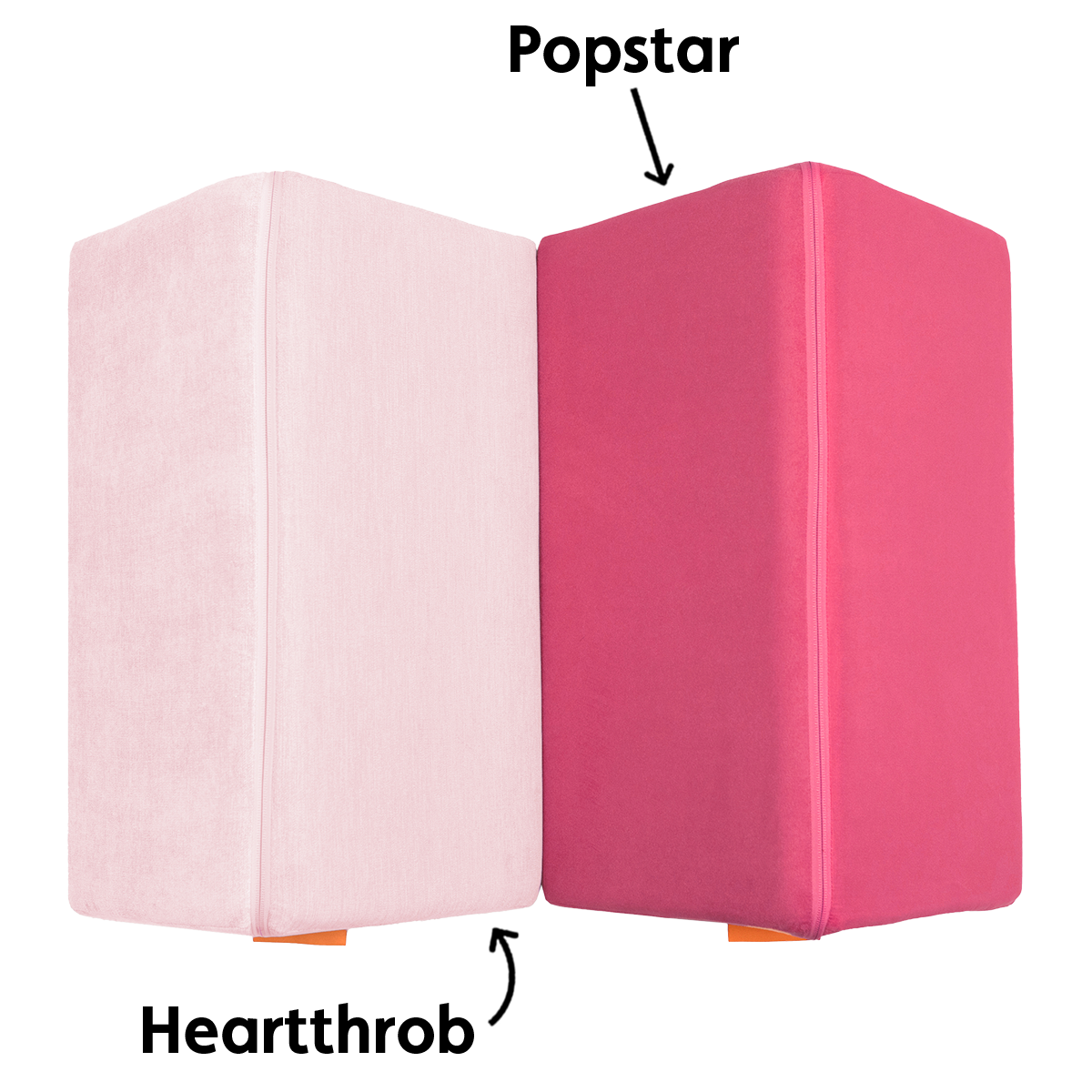 Catch this hit sensation at a playroom near you! Compared to other pinks in the Nuggetverse, Popstar is closest in color to retired Rosebud, though it’s a bit brighter and less creamy than Rosebud. Popstar is similar in saturation to candy pink Lolly, but it’s warmer and more of a true pink. Heartthrob is much lighter, grayer, and dustier than Popstar. Blossom is more pastel and peachy than Popstar, while Juicebox is more of a subdued berry pink than Popstar.