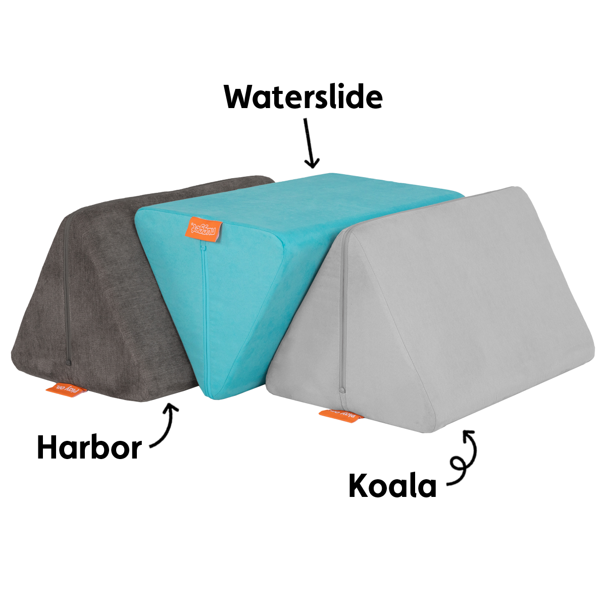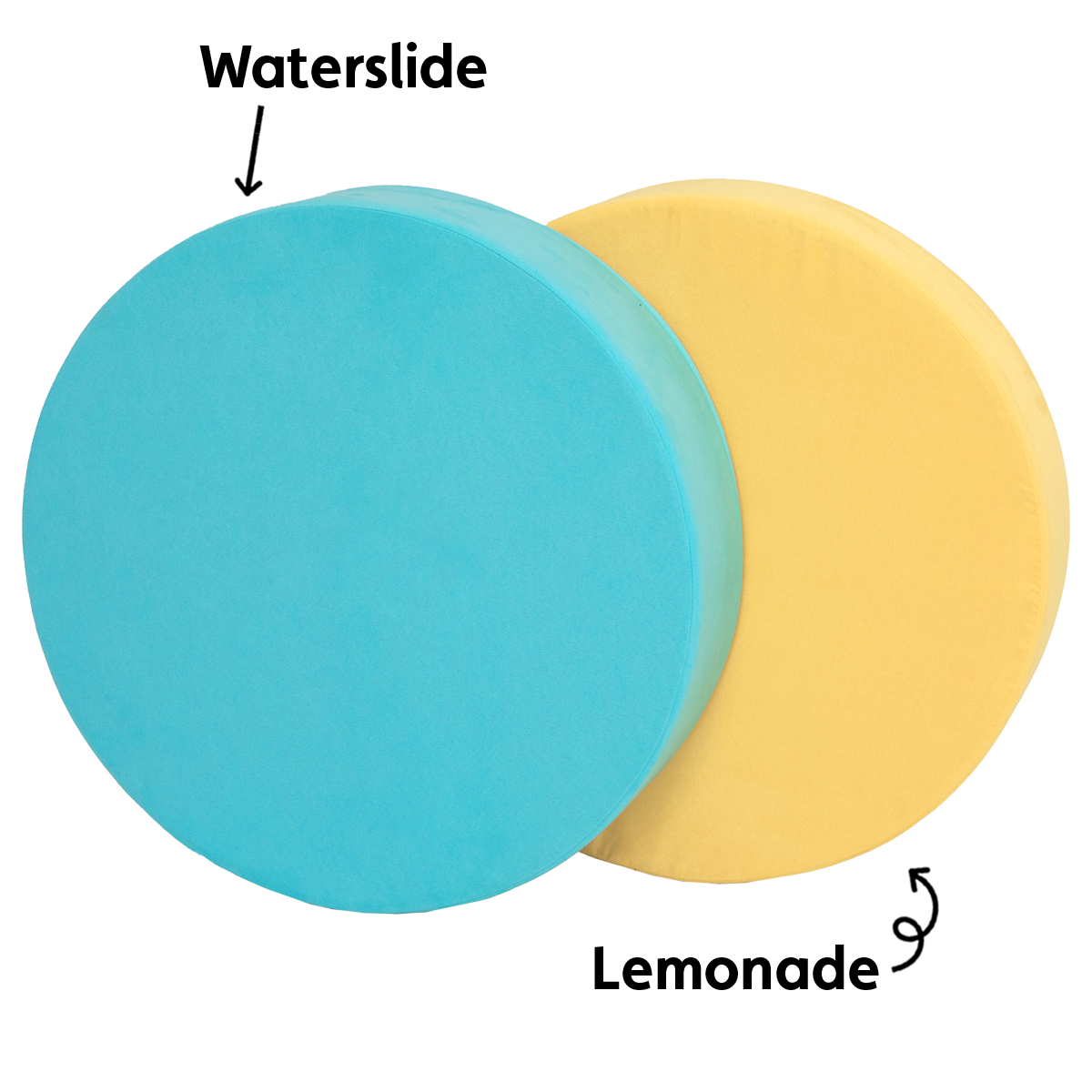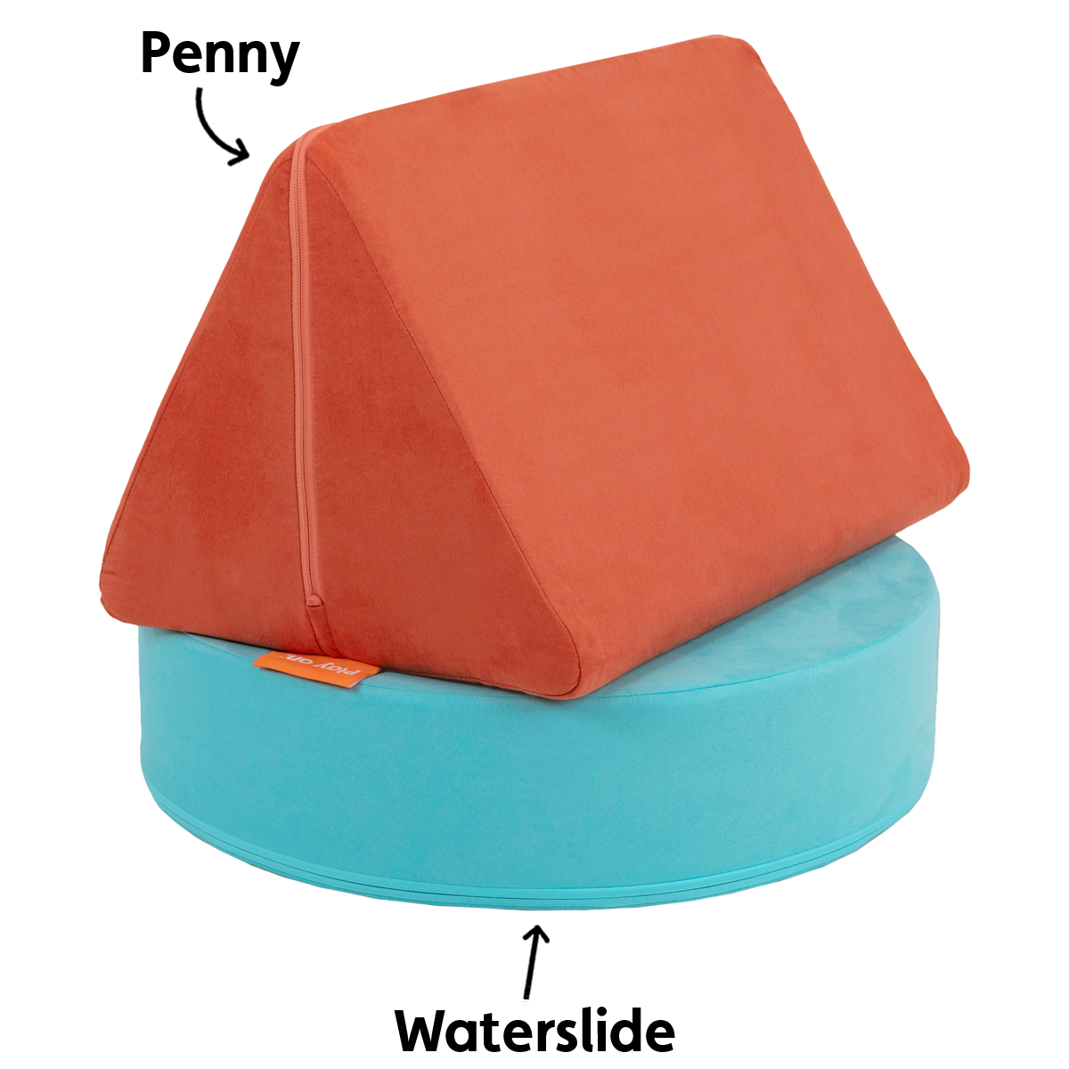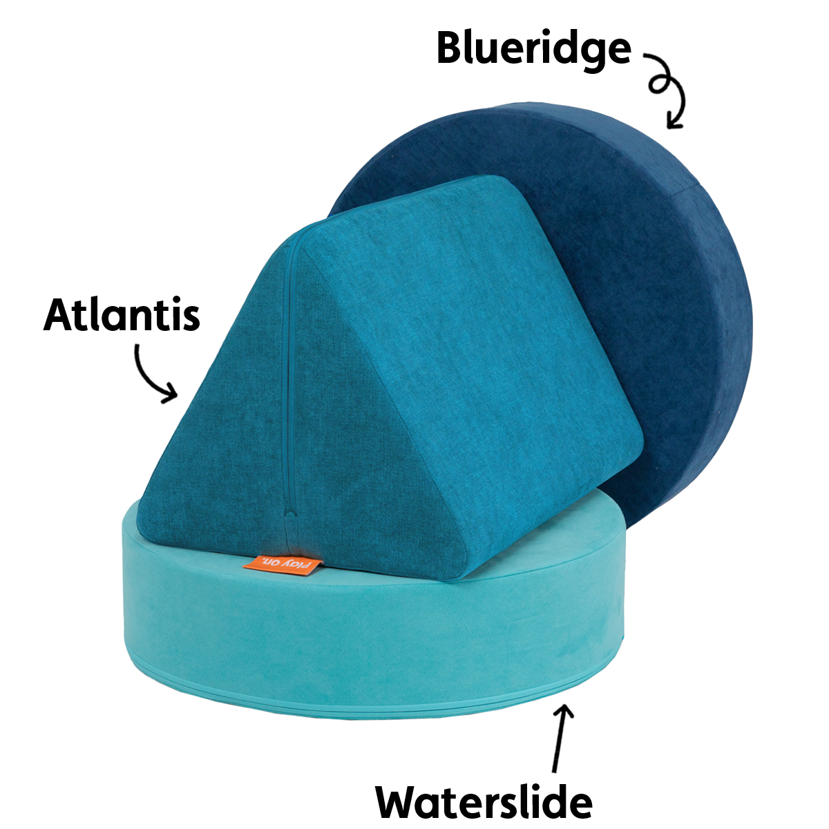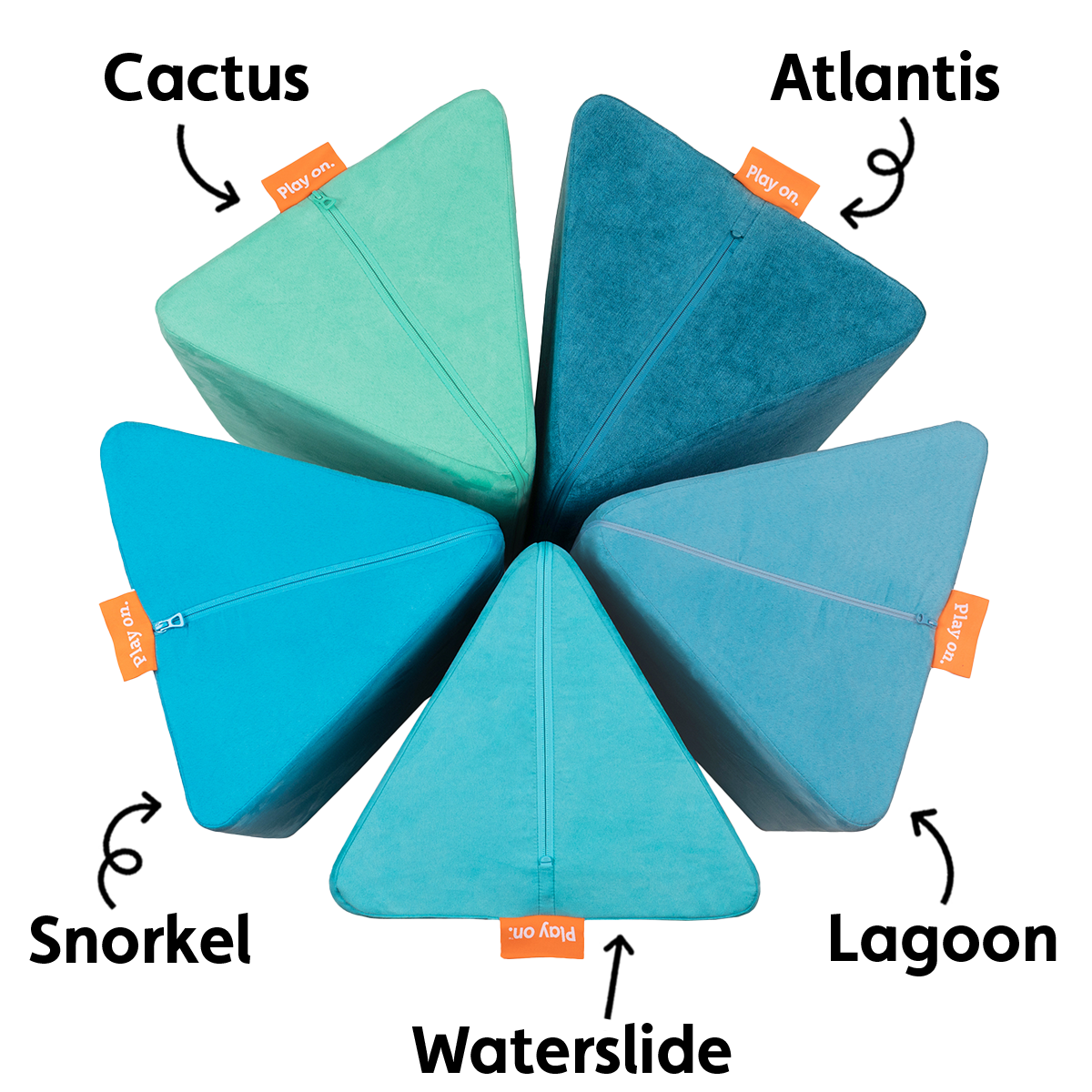 Sunny pool days sold separately. Compared to other Nuggety teals and blues, Waterslide is a true turquoise. It’s slightly greener and brighter than Lagoon, and it’s greener and about the same level of saturation as Snorkel. Waterslide is much more blue than Cactus, and far lighter and brighter than Atlantis.