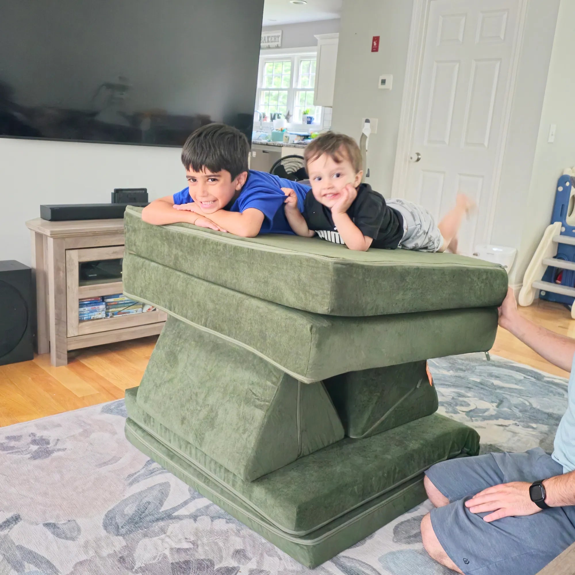 The Nugget is by far the best investment for indoor play . It's functional, well made and allows the kids to tumble and climb around indoors to use their imaginations and energy safely!