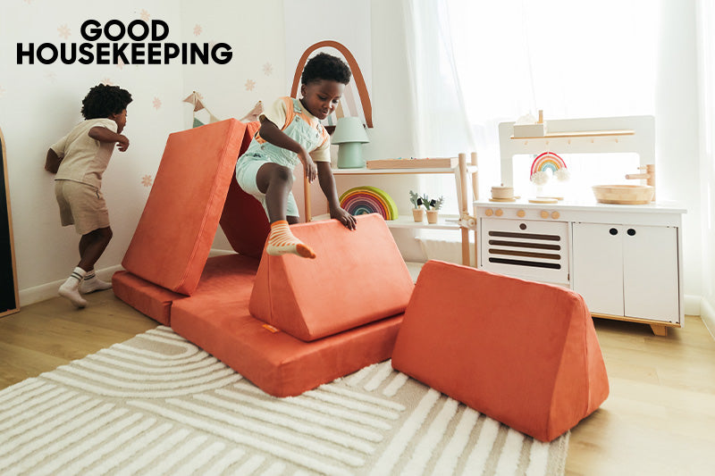 "A boon for families short on space, the four foam pieces can transform into tunnels, obstacle courses, or mini lounge chairs—and then nestle neatly come dinnertime."