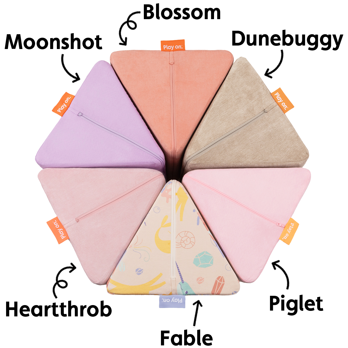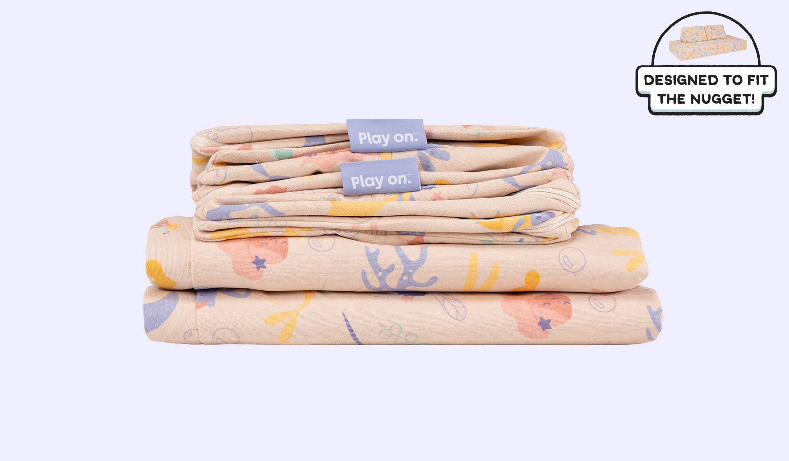 Get in, unicorn crew. We’re going frolicking. Spin a whimsical new tale with double-brushed Fable, a Nugget-original print starring unicorns, narwhals, mer-friends, and fairies. The base color of this fantastical print is closest in comparison to Heartthrob, though this one is a bit more cream than pink. Fairy tale-loving Nuggeteers won’t spot any exact Nugget® colors in this print, but several hues come close to Cactus, Honeybee, and Dewdrop.