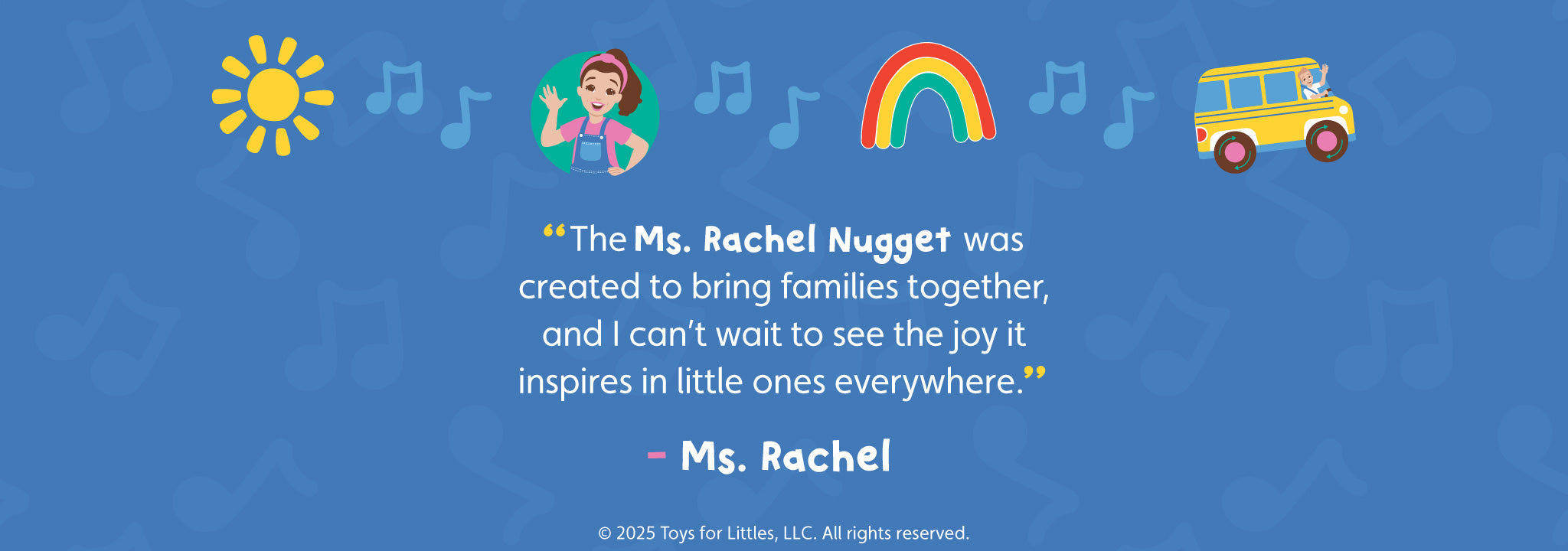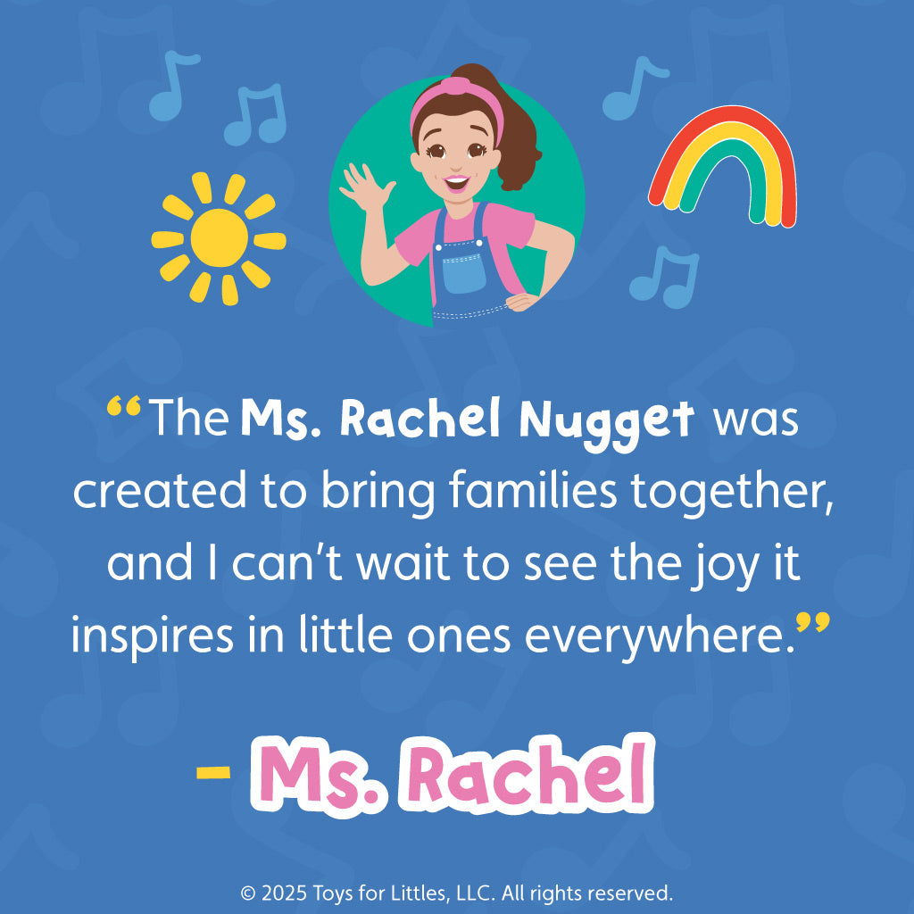 “Play is one of the most powerful ways children learn,” said Rachel Griffin-Accurso (aka Ms. Rachel). “That’s why I’m so excited to collaborate with Nugget, a company that shares our commitment to sparking imagination and connection at home. The Ms. Rachel Nugget was created to bring families together, and I can’t wait to see the joy it inspires in little ones everywhere."
