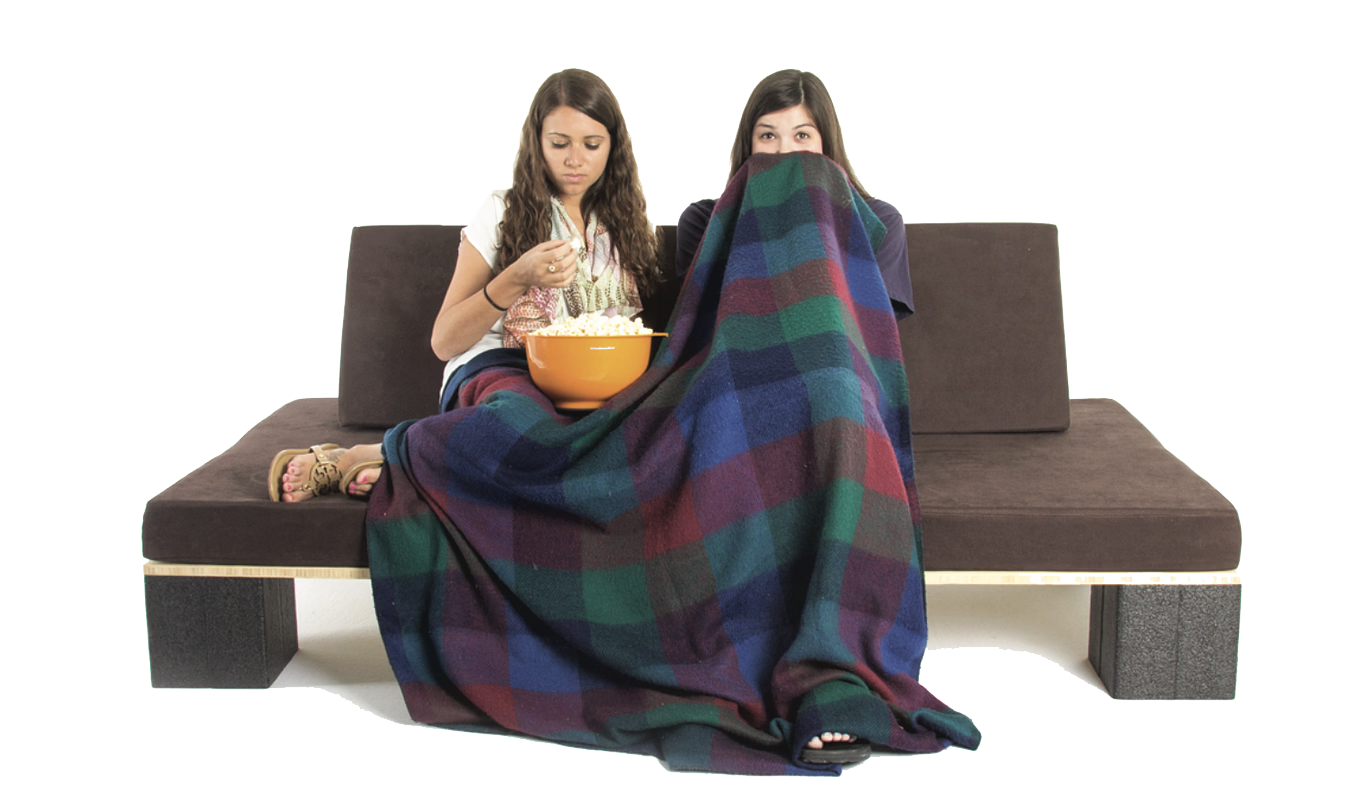 The original concept couch was 11 pieces (!) including a bamboo base and hard foam “feet,” each with foam bumps that plugged into the underside of the boards like puzzle pieces. Designed to replace the cheap, ubiquitous college futon, the prototype had many pieces, and wasn’t super easy to move from place to place — but it did demonstrate that a couch with separate, unattached pieces could be possible.