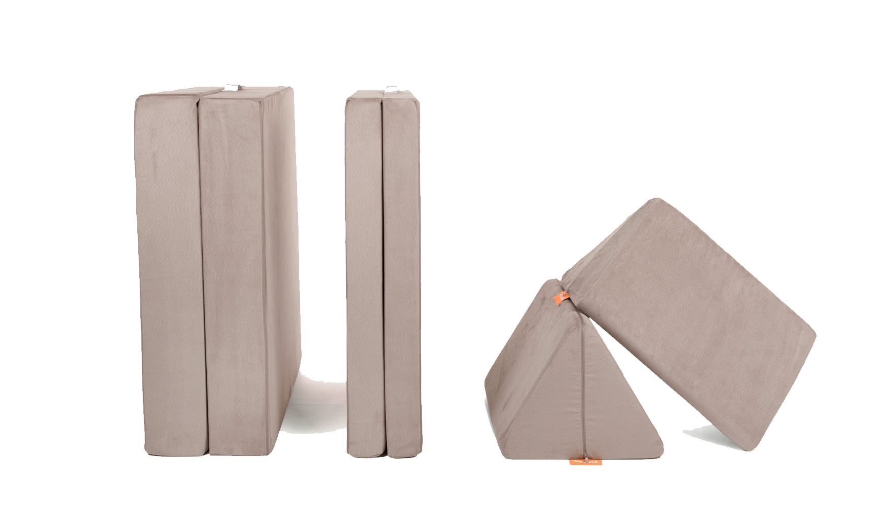 The third stage in Nugget’s evolution was the same dimensions as Nuggets made today. The interior was made 100% from solid polyurethane foam, which meant, unlike the Kickstarter version, that we could compress and roll it for shipping. (Which was a good thing, because soon enough, we would be shipping out a lot more of them.)