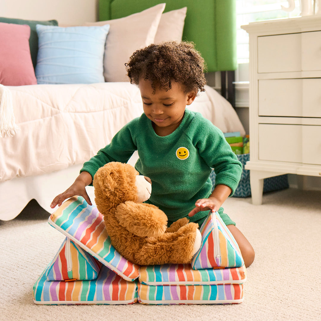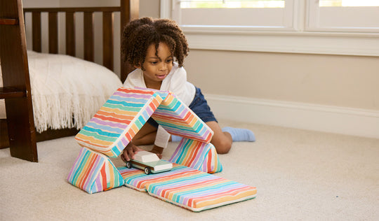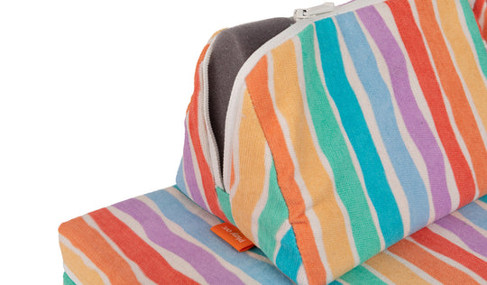Yes (we think… it should be… okay, we didn’t ask, but probably)! Unlike the Nugget®, the Mini Nugget® fits in a carry-on bag and is an excellent travel buddy — it literally makes no noise and is made of foam, so it won’t hurt anyone when a tiny pillow is hurled midair from seat 27C to seat 17A.