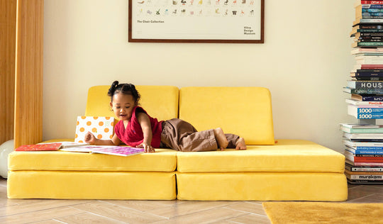 Custom zipper garages on each piece of the Nugget® make the product gentle on walls and on little hands! As an added bonus, we suggest keeping the zipper parked to prevent curious Nuggeteers from accessing the foam. 😉