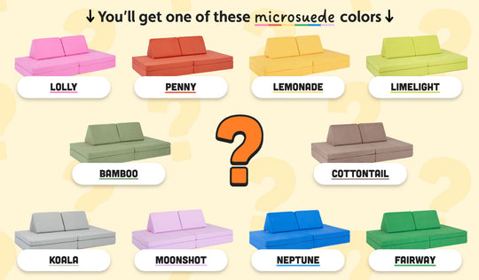 The Original Play Couch™ is infinitely configurable: designed with four foam pieces (base, cushion, and two triangle pillows) and covered in a washable fabric cover in the color of your choice.