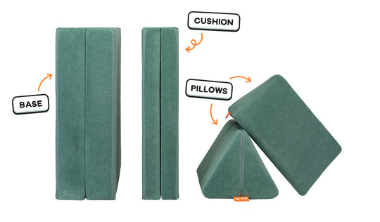 Soft, woven handles on the base and cushion make building with and moving the Nugget® from room to room a breeze! The handles have been tested for long-term durability, and are designed to lay flat when not in use.